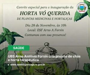 A Unidade Básica de Saúde (UBS) Arno Antônio Forsin, em São Luiz Gonzaga, lança no próximo dia 28 de novembro, às 10h, o projeto “Horta Vó Querida”, uma iniciativa que…