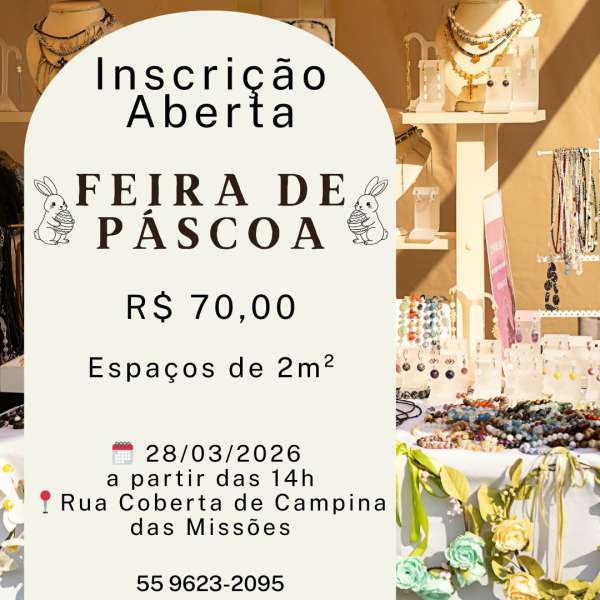 O município de Campina das Missões abriu as inscrições para artesãos interessados em participar da Feira de Artesanato da Osterfest 2026, evento tradicional que integra a programação cultural da cidade.