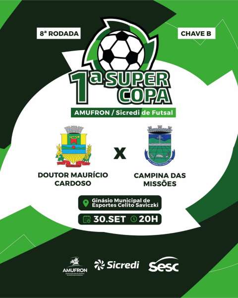 O município de Campina das Missões está representado na 1ª Super Copa AMUFRON de Futsal, competição que reúne equipes de diferentes cidades da região. A participação ocorre nas categorias Livre Masculino e Sub-17, fortalecendo a tradição esportiva local.