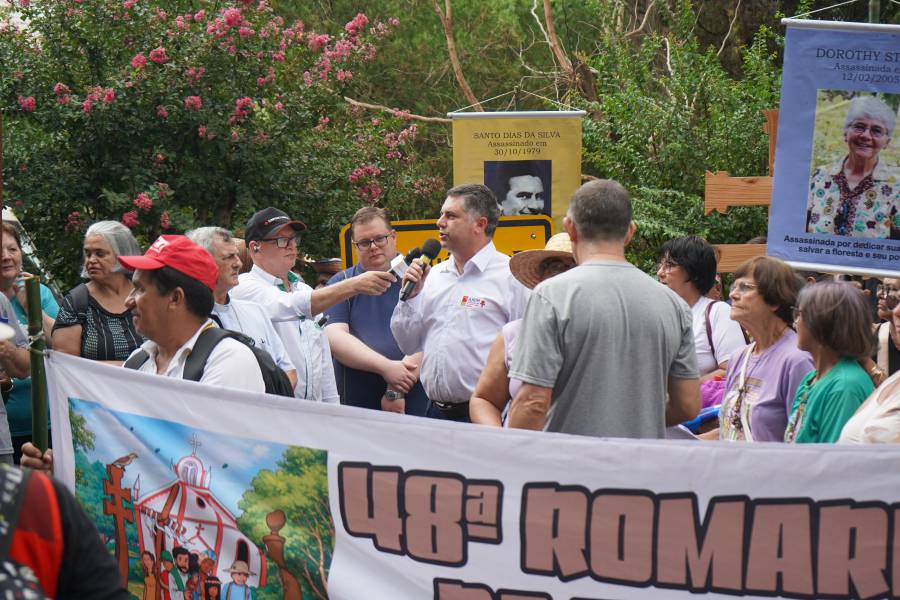 Também presta homenagem a Frei Sérgio Antônio Görgen, lembrado como “romeiro dos romeiros” e símbolo das lutas populares.