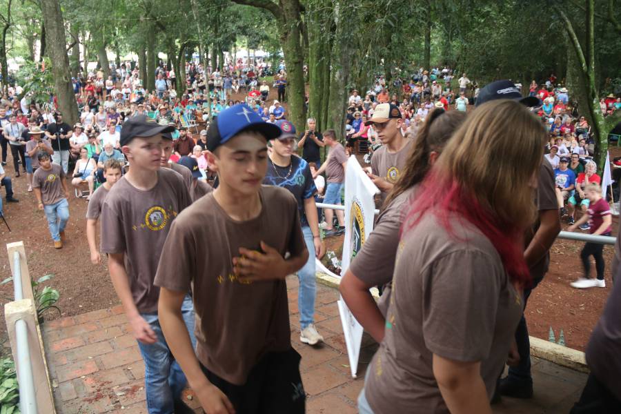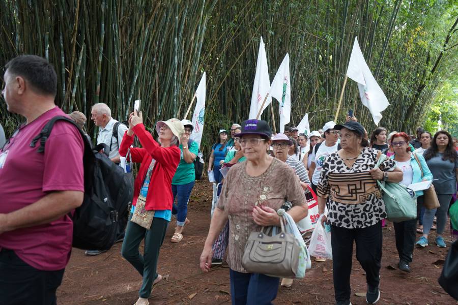 Com o tema “400 anos de Evangelização Missioneira: Terra Sem Males e Ecologia Integral” e o lema bíblico “Eu vi um novo Céu e uma nova Terra” (Ap 21,1), a Romaria propôs uma profunda reflexão sobre Ecologia Integral, justiça social e respeito aos povos originários.