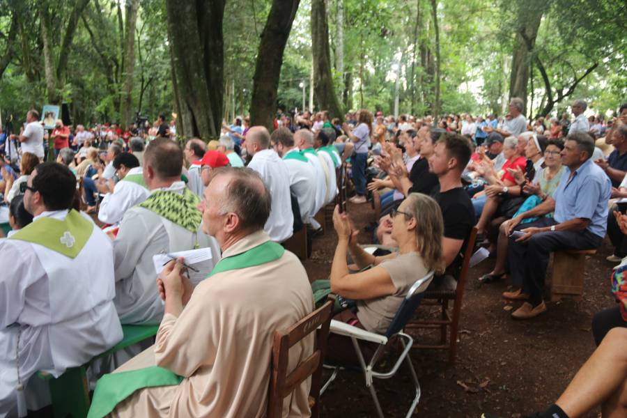 A manhã foi concluída com a Santa Missa celebrada no altar do bosque, presidida por Dom Liro e concelebrada por bispos e sacerdotes presentes. Em sua homilia, o bispo destacou a vida comunitária como um dos principais legados das reduções missioneiras, apontando-as como modelo de organização social baseada na cooperação e na partilha.