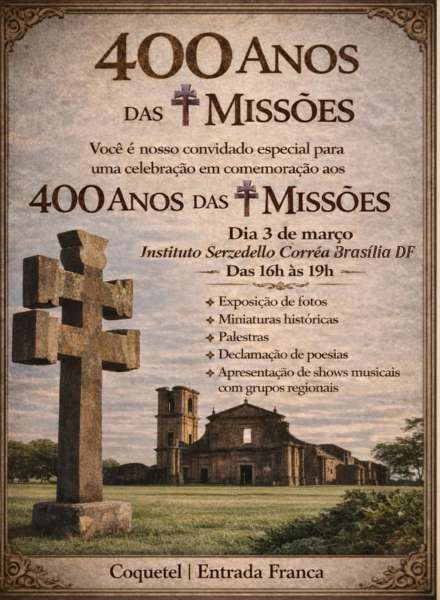 Uma exposição especial será aberta no próximo dia 3 de março, em Brasília, para celebrar os 400 anos das Missões Jesuíticas Guaranis no Brasil, um dos marcos mais relevantes da formação histórica e cultural do país.