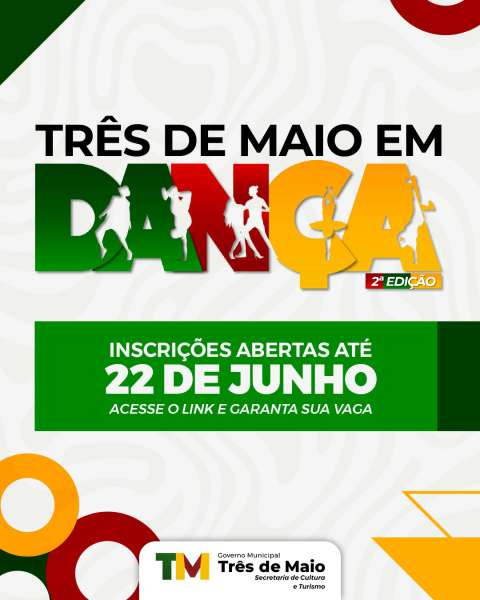 Estão abertas as inscrições para o 3º Festival Três de Maio em Dança, evento que promete reunir grupos, escolas, academias e bailarinos da região em um grande encontro dedicado à arte da dança.