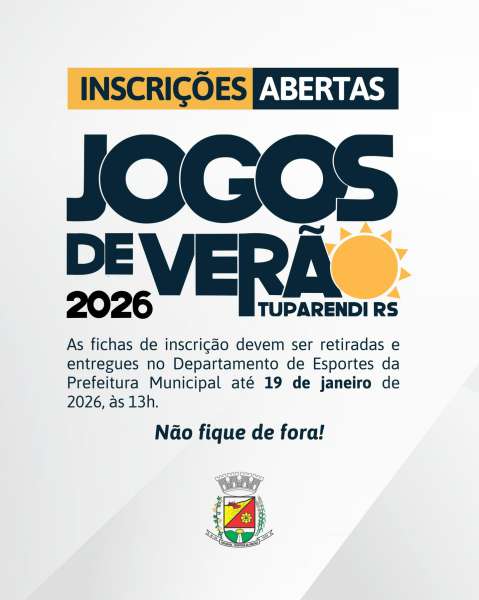 A Prefeitura Municipal de Tuparendi informa que estão abertas as inscrições para os Jogos de Verão 2026, um dos eventos esportivos mais aguardados do município, que tem como objetivo promover integração, lazer e incentivo à prática esportiva para todas as idades.