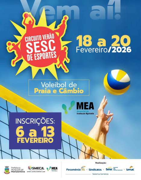 Horizontina receberá mais uma edição do Sesc Verão 2026, evento que incentiva a prática esportiva, a integração social e hábitos saudáveis, trazendo neste ano o tema “Esporte é Movimento”. As inscrições já estão abertas e seguem até o dia 13 de fevereiro, podendo ser realizadas diretamente na Secretaria Municipal de Esportes.