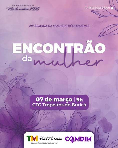 O ponto alto da agenda será no dia 7 de março, com a realização do 29º Encontrão da Mulher Três-Maiense, no CTG Tropeiros do Buricá. A iniciativa integra o calendário oficial e reúne mulheres da cidade e do interior em um momento de confraternização, reconhecimento e fortalecimento da participação feminina na comunidade.