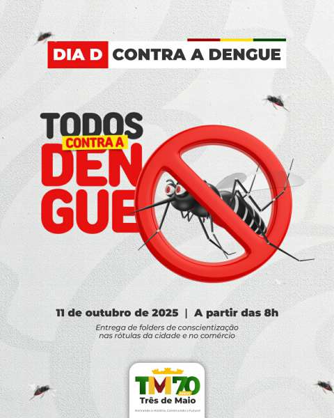 Neste sábado, a Secretaria Municipal de Saúde de Três de Maio promove o Dia D de combate à dengue, com uma grande mobilização comunitária voltada à conscientização e prevenção da doença.