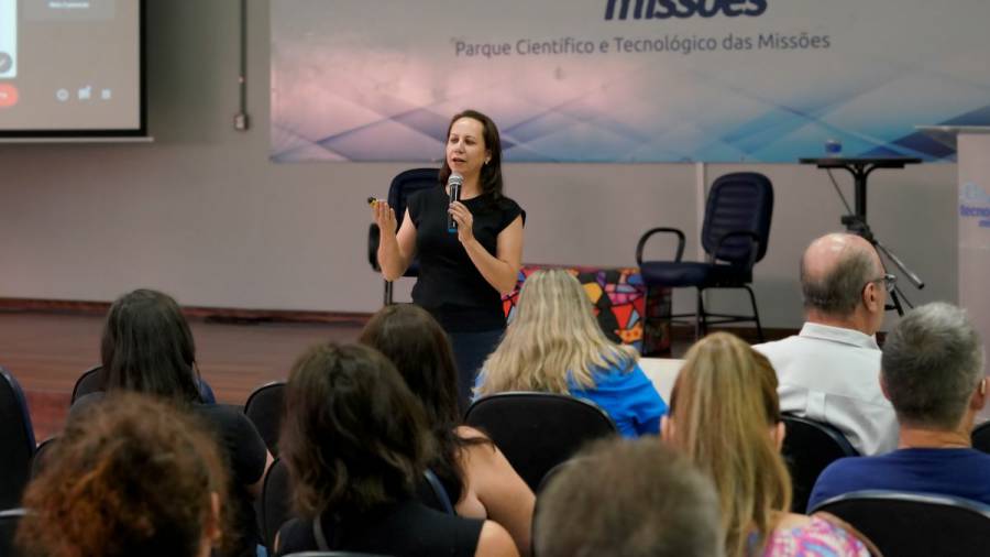 Na sequência, o diretor acadêmico Carlos Lemos anunciou a palestra da professora da URI Santo Ângelo Drª Neusa Cristina Pereira, que abordou o tema “Como o cérebro aprende? Os caminhos da aprendizagem”.